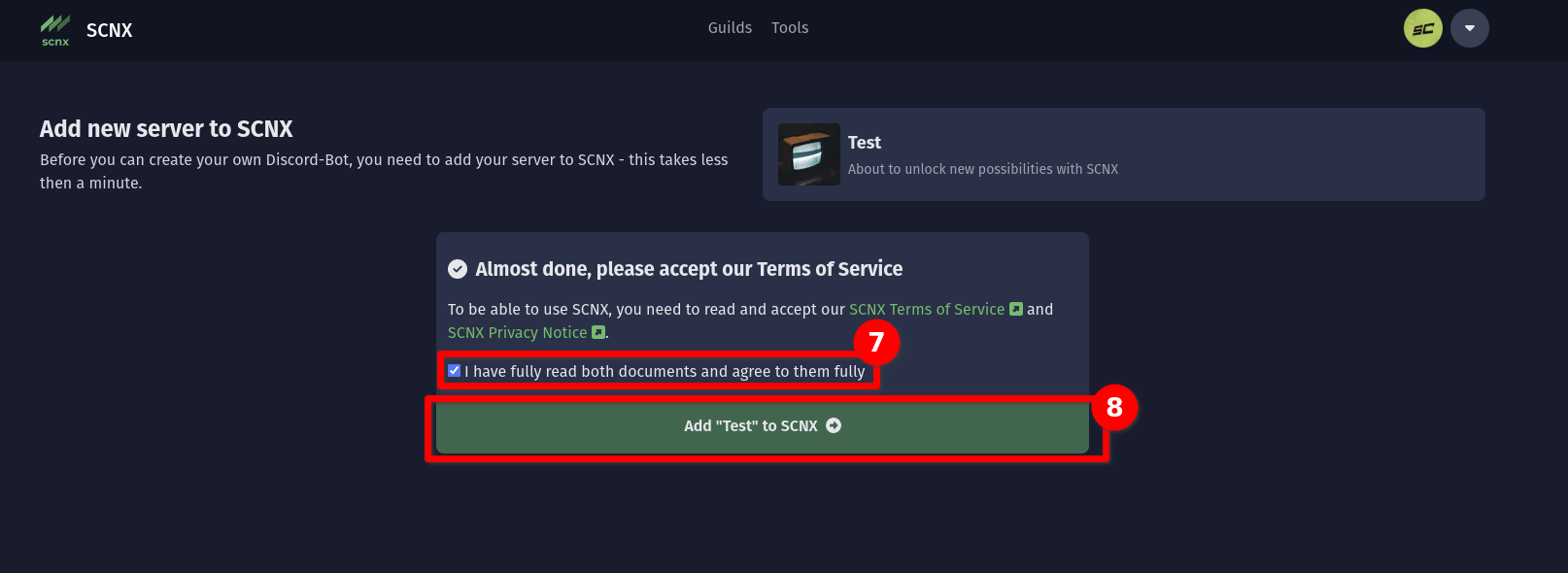 Dein Server wurde erfolgreich zu SCNX hinzugefügt 🎉